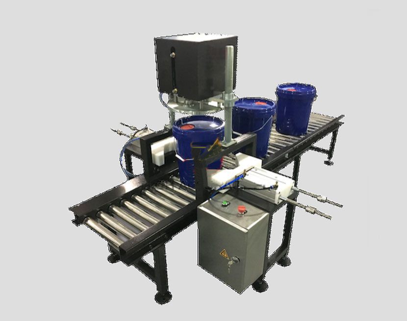 應用案例 高灌YCS/20L自動塑料桶排氣壓蓋機主要用于開口桶、涂料桶、潤滑油桶、包裝桶、油漆桶、手提桶(方便桶)系列:4升、5升、10升、12升、18升、20升、的標準桶封蓋的必備專用工具。廣泛用于制桶、制罐、潤滑油、涂料、化工、石油、糧油、等液體包裝行業的必備用品。 高灌YCS/20L自動花籃桶夾蓋機產品主要用于18升--20升、的涂料桶、包裝桶、油漆桶、手提桶(方便桶)、標準花籃桶封蓋的必備專用工具。廣泛用于制桶、制罐、潤滑油、涂料、化工、油漆、油料、石油、糧油、等液體包裝行業的必備用品。功能特點YCS/20L:1.壓蓋方式:兩次壓蓋(先壓一半,再壓另一半)。2.控制方式:電子-氣動控制。3.輸送方式:輥道自動輸送。4.具備壓蓋時間可調。5.具備壓蓋力度可調6.自動感應光電。7.具備排氣功能,無鼓桶蓋現象。8.壓蓋緊密,無泄漏。 YCS/20L:系列的夾蓋機是專門為國際通用的標準桶封蓋而設計的。 它結構合理、制作精確、外形美觀、操作方便。用戶開始使用時,只要調整好主軸上螺母位置后便能正常使用。輥道自動輸送及自動光電感應。主要另件采用鋼材料做成,具有堅固耐用、磨損小、機械強度高、不易折斷、封蓋嚴密等優點。名稱自動排氣壓蓋機自動花籃鐵桶夾蓋機型號YCS/20LYCS/20L控制系統電子-氣動電子-氣動壓蓋盤標準尺寸¢340mm (可定做)¢300mm (可定做)壓蓋范圍4-20L18-20L 壓/夾蓋速度(20L桶)120-150桶/小時;(4-10L桶)150-200桶/小時120-150桶/小時; 材質碳鋼噴塑框架、動力輥道輸送碳鋼噴塑框架、動力輥道輸送外形尺寸1000(L)×520(W)×1300(H) (mm)1000(L)×520(W)×1300(H) (mm)重量110KG100KG上海廣志自動化設備是專業生產25升灌裝機的廠家,歡迎廣大客戶前來咨詢,電話021-60518382 上海廣志自動化設備是專業生產25升灌裝機的廠家,歡迎廣大客戶前來咨詢,電話021-60518382 上海廣志自動化設備是專業生產25升灌裝機的廠家,歡迎廣大客戶前來咨詢,電話021-60518382