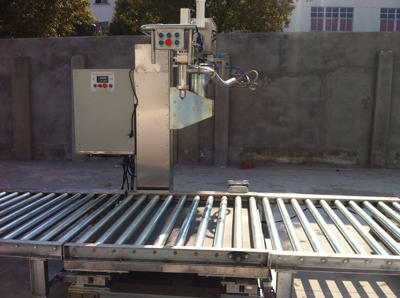 工具將桶蓋旋緊并夾好防偽蓋。稱重系統(tǒng)采用精度傳感器和稱重儀表,具有落差自動(dòng)修正和零點(diǎn)自動(dòng)跟蹤等多項(xiàng)功能(詳見稱重儀表說明)。 可根