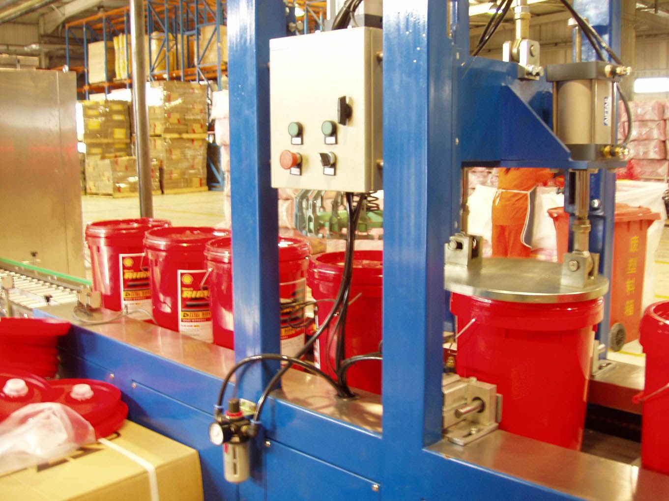 藥、化妝品等行業(yè)的鐵罐壓蓋。設(shè)備用于供蓋、夾桶、傳送、鎖蓋,機(jī)器自動(dòng)化程度高,穩(wěn)定性好,調(diào)節(jié)方便。
