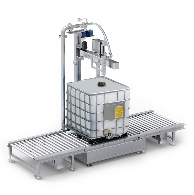 人工將空桶放到空桶暫存區(qū),自動(dòng)輸送到秤臺(tái)上,,然后點(diǎn)擊啟動(dòng)按鈕,儀表首先判桶并扣除空桶皮重,灌裝頭插入桶內(nèi)打開進(jìn)入快速落料,當(dāng)達(dá)到慢進(jìn)料設(shè)定重量時(shí),自動(dòng)轉(zhuǎn)為慢速落料。當(dāng)重量達(dá)到目標(biāo)值時(shí)停止落料,此時(shí)灌裝頭復(fù)位到初始位置,儀表回皮顯示總重,自動(dòng)輸送到成品暫存區(qū),待叉車取走,整個(gè)動(dòng)作流程結(jié)束。