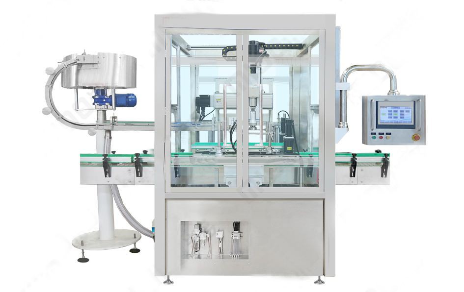 整機采用運動控制器和觸摸,屏自動化控制,集上蓋、理蓋、旋蓋于一體,節省了勞動成本,提高了生產效率。具有旋蓋準確、結構先進、運行平穩、噪音低、適用范圍廣、換產調節全程參數化及無工具化、生產速度快,動態旋蓋等特點。具有PLC記憶功能,可同時記憶多種運行參數組合。機械結構簡潔、空間大,裝有安全防護外框,提高整機的安全性能。有自動潤滑功能,提高設備使用穩定性,延長設備使用壽命。