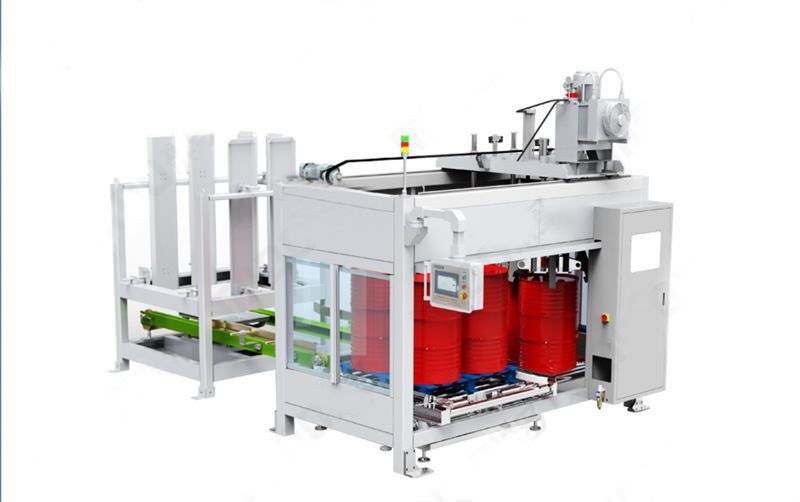 移載式碼垛機(jī)是將200L桶按一定排列碼放在托盤 上,自動(dòng)輸出,便于運(yùn)輸至廠庫存儲(chǔ),實(shí)現(xiàn)智能化操作管理,可減少勞動(dòng)人員和減低