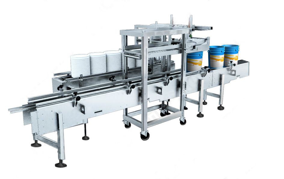 本機(jī)是專為廣口桶的自動(dòng)上蓋、壓蓋開發(fā)的設(shè)備。集儲(chǔ)蓋、自動(dòng)分蓋、定向上蓋、壓蓋等功能與一體。本機(jī)為定向上蓋,進(jìn)而保證桶蓋與桶身提手、標(biāo)