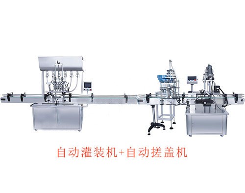 2、全自動灌裝生產線該機由四個氣缸驅動、四個灌裝頭同時灌裝、灌裝物料更加快速。