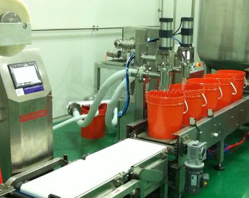 自動稱重灌裝旋蓋線 20L 工作流程:手動放桶---自動輸送----自動定位灌裝----手動放蓋-----自動壓蓋---- --自動輸送。