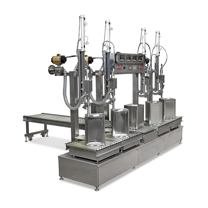 自動灌裝機主要針對化工廠生產(chǎn)過程中中間環(huán)節(jié)進行灌裝,主要灌裝化工桶,產(chǎn)品灌裝頭部分采用316不銹鋼材質(zhì),不適用腐蝕類化工料,針對液體進行灌裝。