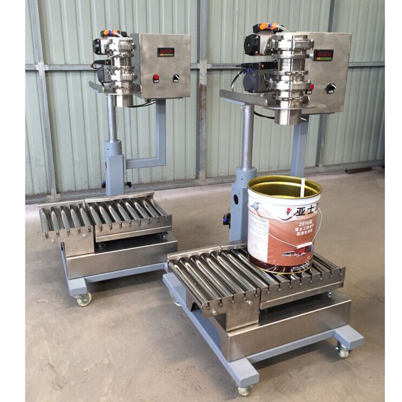 自動(dòng)封口機(jī)會(huì)立即配合動(dòng)作將桶蓋準(zhǔn)確擠壓,對(duì)灌裝機(jī)灌好的涂料進(jìn)行密閉封口。