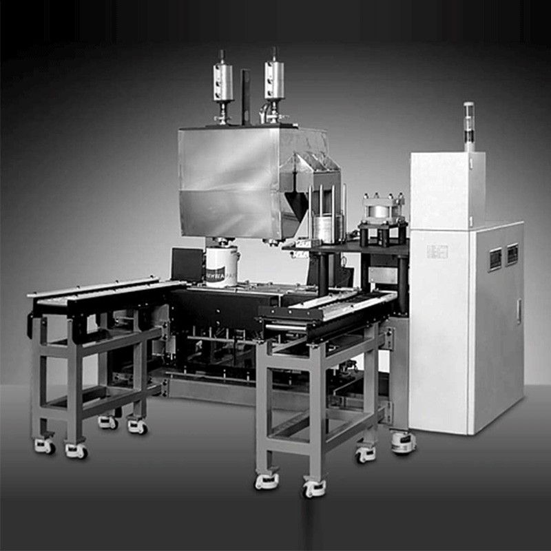 ■ 在灌裝系統(tǒng)的控制下,灌裝自動(dòng)定位找到桶口,灌裝頭自動(dòng)插入桶口,并將空桶自動(dòng)去皮,系統(tǒng)打開球閥,進(jìn)行大中小料三段式灌裝;
