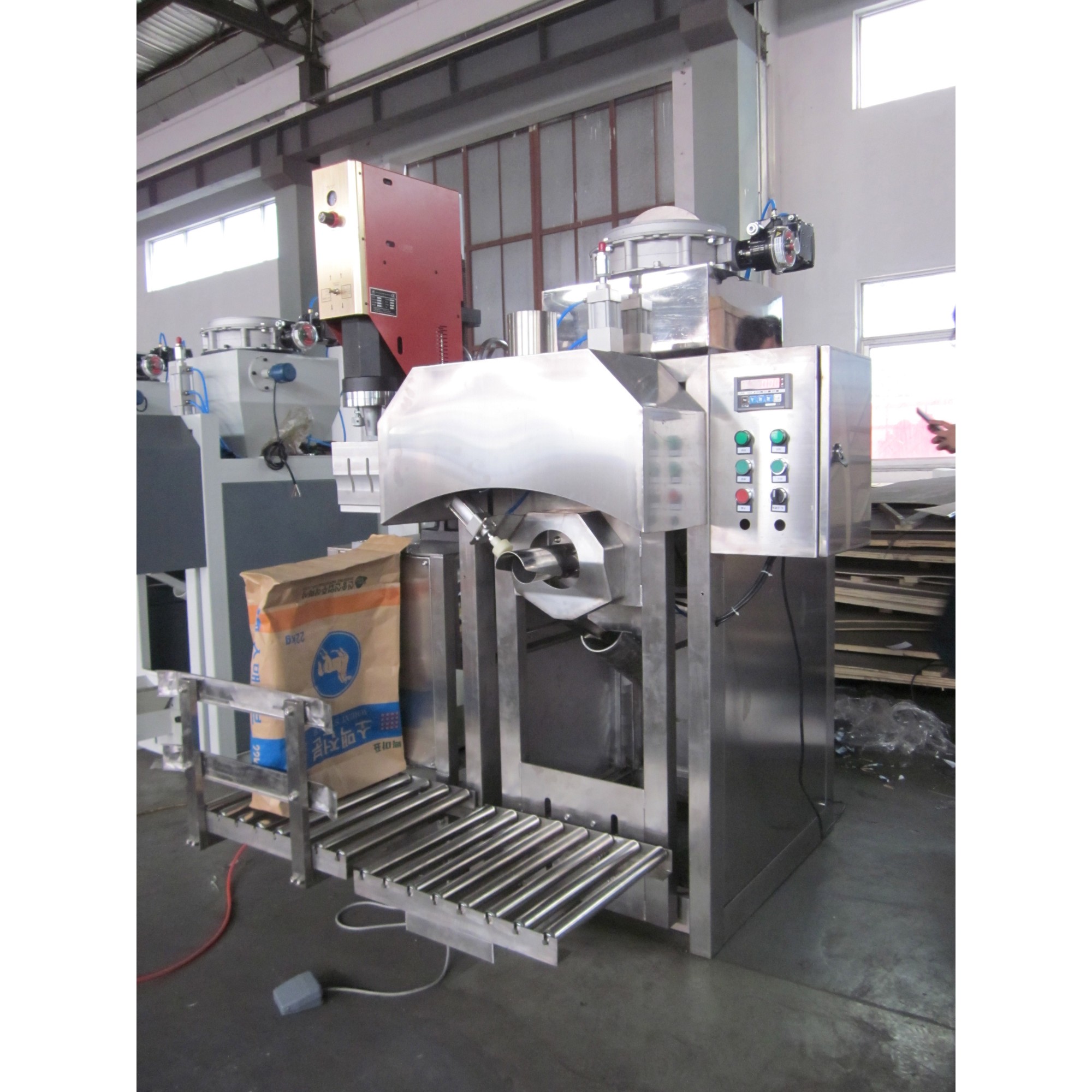 Conveyor belt: Facilitate the transportation of filled bags, reduce manual handling;