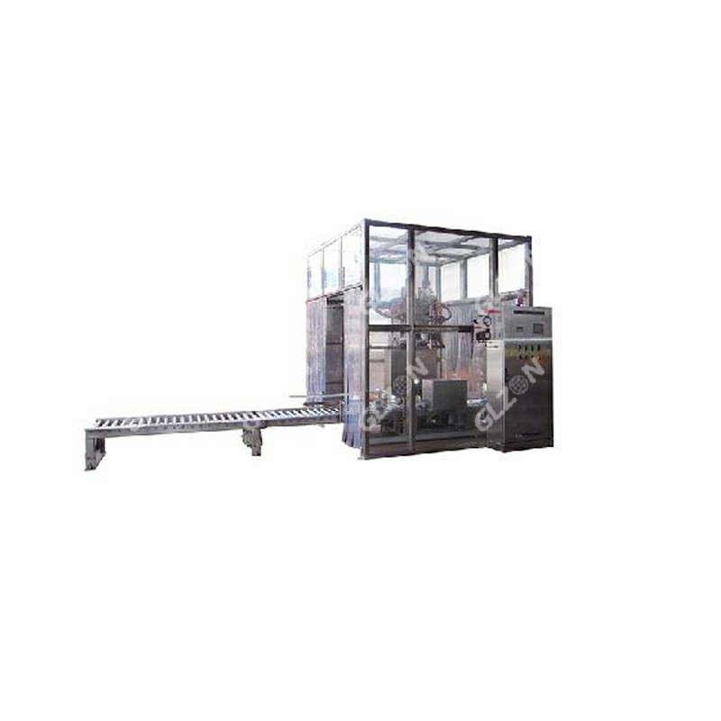 操作流程:人工開蓋將空桶放在輸送線上,輸送線啟動,自動輸送至灌裝工位,自動對口自動灌裝,首先進入快速落料,到達一定重量(設定的小料重量)時轉換為慢速落料,當重量到達目標值時停止落料,計量完成即灌裝完成。當灌裝完成后,自動輸送至成品區(qū)人工鎖蓋,叉車移走成品桶,灌裝流程結束!