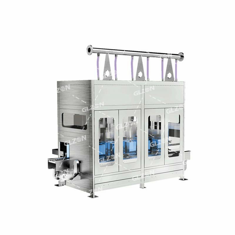 本機采用三排平移灌裝,有效的節省了進出桶時間,相比單排自動灌裝機擁有更短的工作周期。