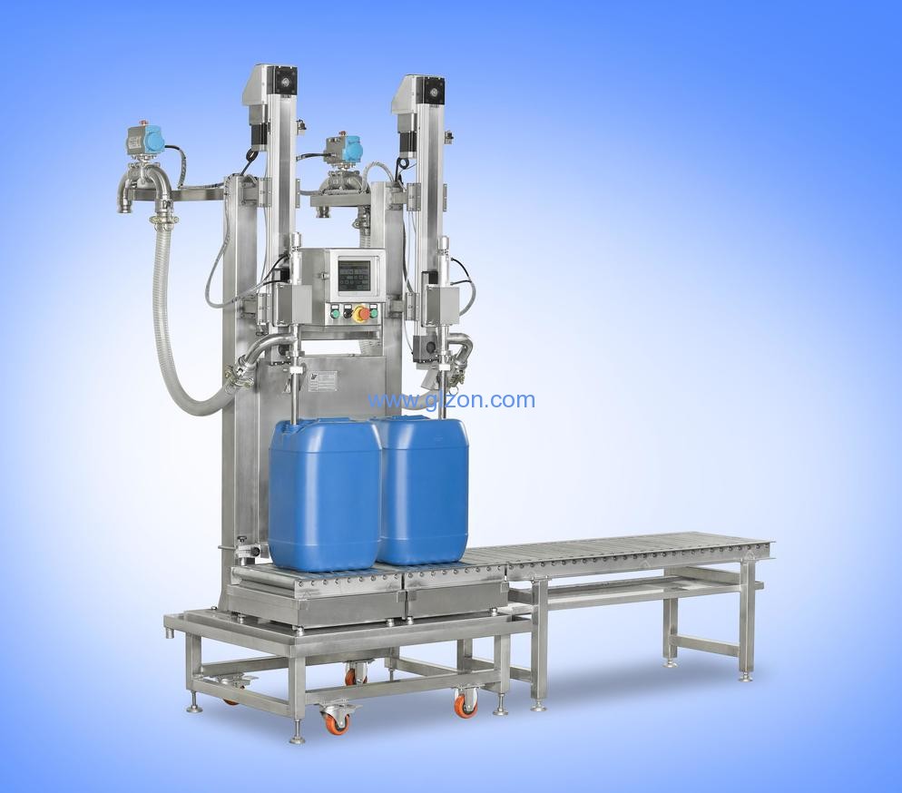 液體灌裝機是yi種自動化程度ji高的包裝設備,其主要功能是將液體物料自動灌裝成預定設置的重量。液體灌裝機在灌裝過程中可以有效避免物料溢出,較大程度地防止物料本身對環境的污染,從而對操作人員進行有效地勞動保護。其系統工作穩定可靠,操作簡單,灌裝準確。灌裝機主要由灌槍裝置、PLC系統控制部分、稱重系統、灌裝架臺、輸送設備等組成。