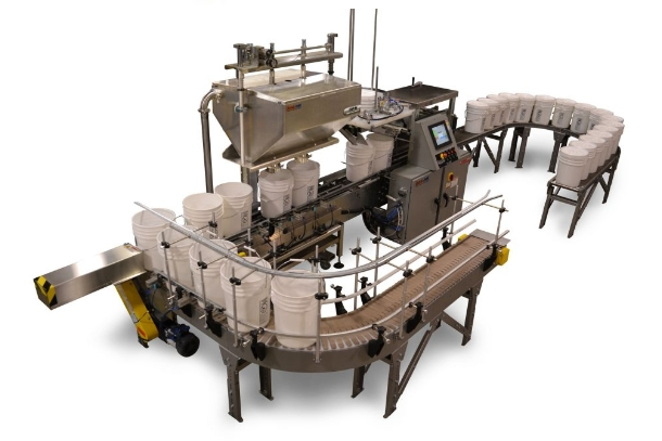 Automatic PLC-controlled filling, lid placement, lid closing and conveyor systems for hands-free operation.