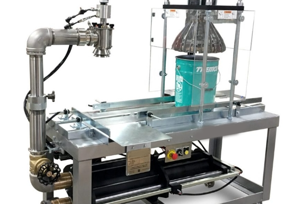 The economical semi-automatic volumetric filler that can be configured to fill a wide variety of container sizes. 1/2 Pint to Pails. Placing a container under the nozzle begins the fill cycle by contacting the no-can-no fill switch. After filling, the container is advanced by the operator to the conveyor. Containers are sealed as they are conveyed through an available roller closer, crimper or press plate.