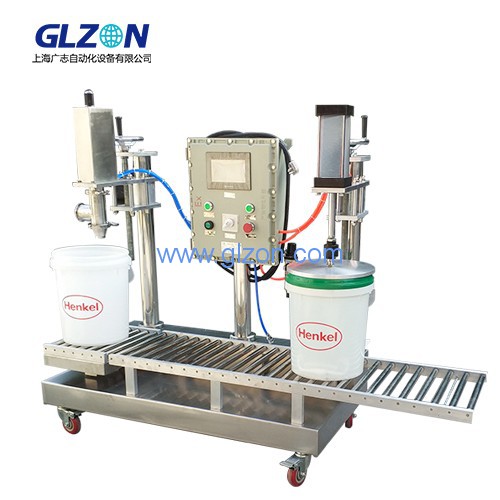 18升潤滑油灌裝機 200升灌裝機功能 ●結構簡單,便于使用和維護●料罐和閥門便于清洗,適用于經常更換產品的場合●灌裝速度可任意調節,灌裝精度高●料罐上部可以附加過濾裝置適用產品●5升到20升的各種罐型的容器●涂料,油墨,溶劑,潤滑油,防凍液●其他液體化工產品 技術參數型號:GZMS-20閥門材料:SUS-304灌裝精度: 士0.1%~士0.2%灌裝方式:2檔控制(可選三檔)灌裝速度:2~6罐/分鐘(單頭)灌裝頭:1~4個防爆等級:ExdⅡBT4計量方式稱重式電源:AC220V/50Hz氣源:4-7kg/cm2 ,70升/分上海廣志自動化設備是專業生產25升灌裝機的廠家,歡迎廣大客戶前來咨詢,電話021-60518382 上海廣志自動化設備是專業生產25升灌裝機的廠家,歡迎廣大客戶前來咨詢,電話021-60518382 上海廣志自動化設備是專業生產25升灌裝機的廠家,歡迎廣大客戶前來咨詢,電話021-60518382
