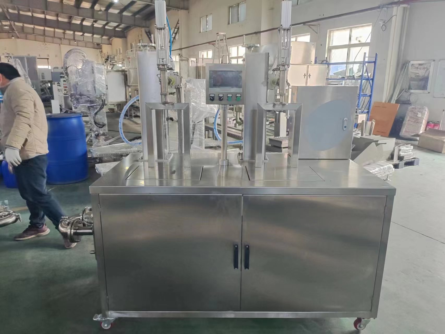 - SS304#不銹鋼全密封金屬灌裝頭1套,并帶有升降裝置,適合不同規格的桶灌裝。