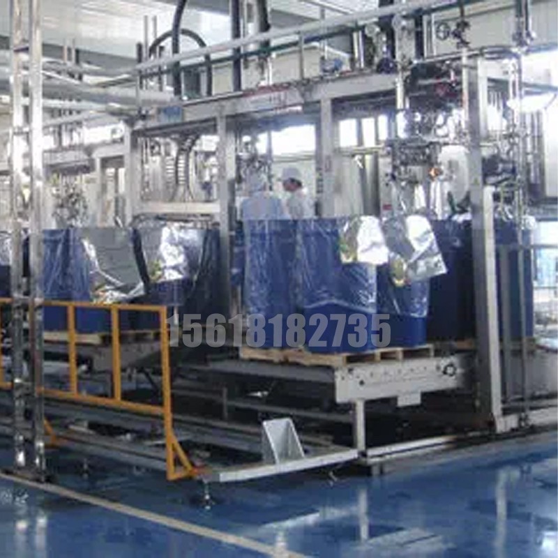 對于容量為 220 升重(60 升重)或 1.100 升重(300 升重)的袋子,可采用單頭型(1-200/4-1.000 米)或雙頭型(2-200升/4-1.000 米)提供無菌填料。 兩種型號都配備了用于托盤/箱進料和噴出的電動滾輪輸送機、移動式灌裝頭、監控工作站和灌裝頭下方的旋轉滾輪輸送機。