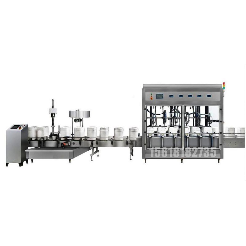 稱重灌裝生產線主要是用于油漆、潤滑油、乳化油等一些低粘度的物料灌裝,以稱重的方式來實現定量填裝??梢宰詣舆M行送桶、灌裝、壓蓋、貼標以及碼垛,適用于不同容量的物料灌裝,且能達到每分鐘15-60瓶的灌裝速度,減少了大量的人工成本費用。整體結構簡單,即使是非專業人員通過簡單的教學也可以進行操作使用。