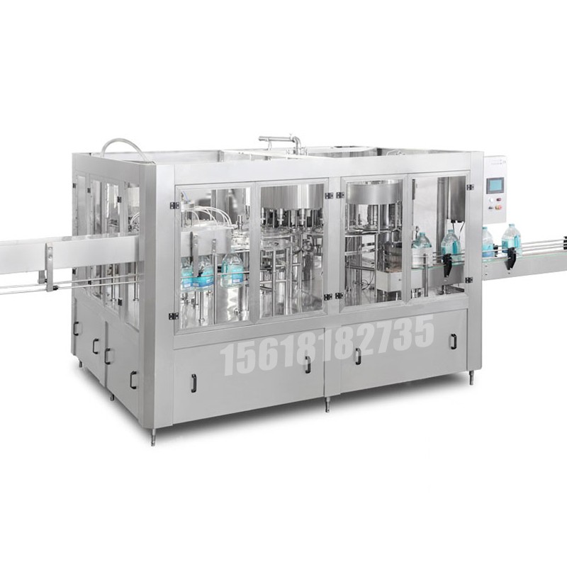 3L-15L大瓶水灌裝機,在一機上實現沖瓶、灌裝、封蓋三道工序,縮短了物料與外界接觸時間,提高了衛生條件,懸掛式卡瓶口輸送瓶結構,更換瓶型更方便.快捷省力,主機采用先進的PLC可編程自動控制技術,關鍵的電器元件均采用國際知名商品的產品。