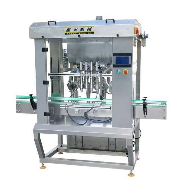 全自動芝麻醬灌裝機生產線由全自動4頭芝麻醬灌裝機和高速辣椒醬真空旋蓋機組成,是我司新款的4頭醬料灌裝機,設計新穎、外形美觀,具有界面友好,適應性強、操作簡單、灌裝量準確,維護方便等特點。設備表面和物料按觸面均采用304不銹鋼材料制造,無滴漏,無拉絲,易清洗,完全符合食品行業標準要求。芝麻醬灌裝機設備表面和物料按觸面均采用304不銹鋼材料制造,無滴漏,無拉絲,易清洗,完全符合食品行業標準要求。