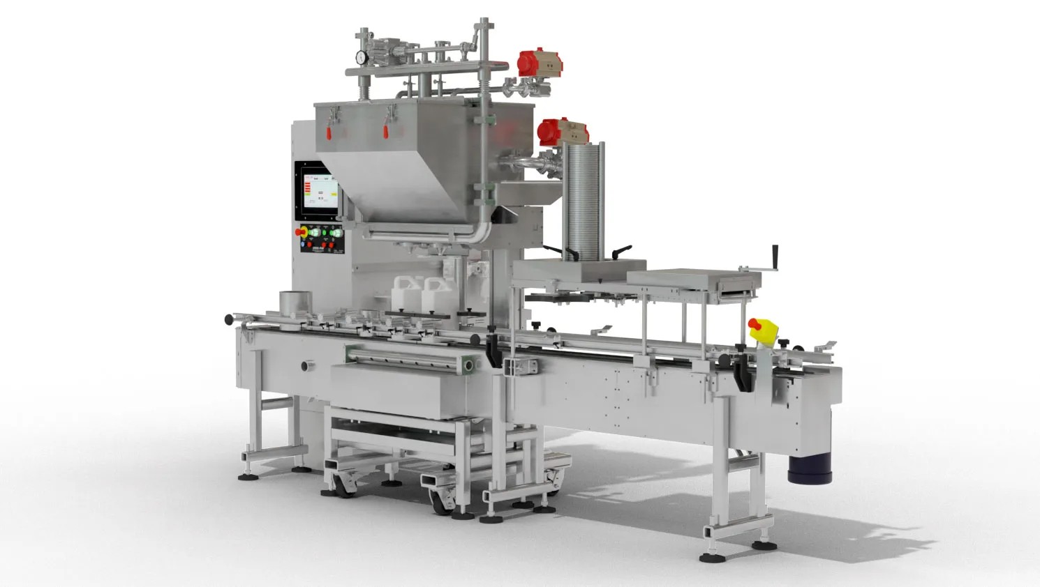雙頭在線自動凈重灌裝封口機,適用于1/2品脫至加侖的容器,配有DFS灌裝車