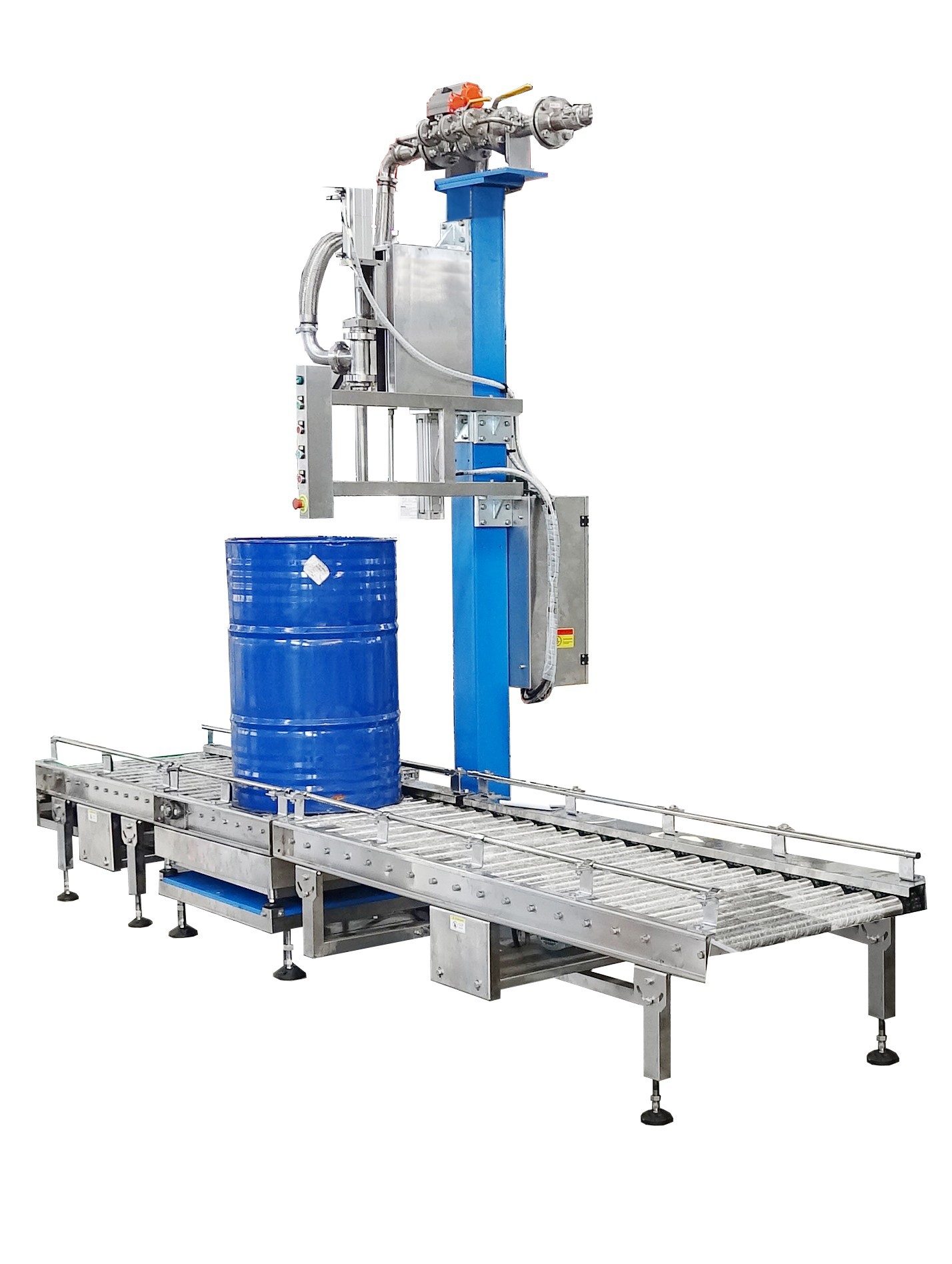本機專門針對100-300kg的液體桶包裝而設計的智能化包裝系統,下潛灌裝,采用高精度稱重傳感器進行稱重灌裝,可自動設定灌裝機,自動進行毛重、凈重灌裝。具有操作方便,生產效率高,適用范圍廣等特點。適用于涂料、化工產品以及化工中間體的灌裝。它產能穩定,操作簡單。