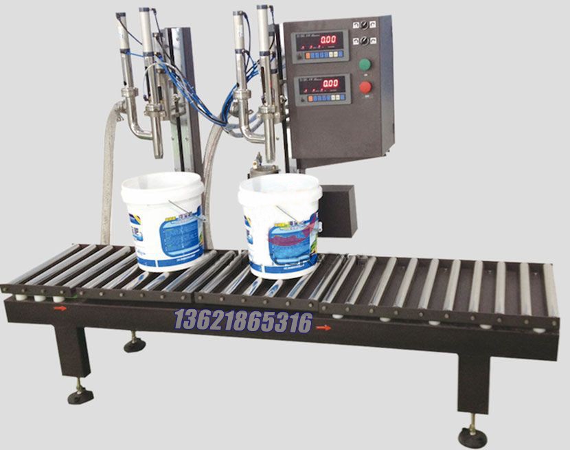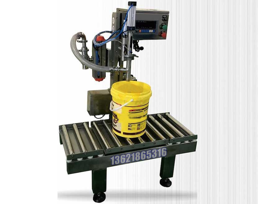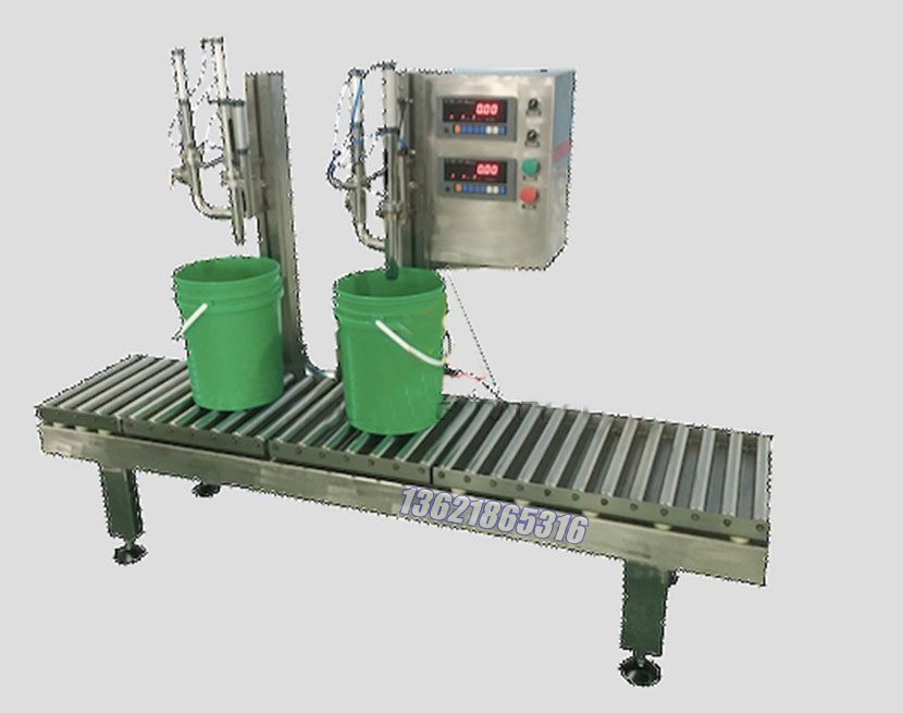 應(yīng)用案例 YCS-30型高灌稱重式灌裝機(jī),原理是由稱重傳感器平臺(tái)在微電腦程序的控制下設(shè)定計(jì)量.是高精度,高技術(shù)產(chǎn)品.是集機(jī)、電、儀一體化的新型機(jī)種,它改變了傳統(tǒng)流量計(jì)式灌裝機(jī)定量精度及無(wú)法對(duì)較粘液體的計(jì)量缺陷.是文明生產(chǎn)和國(guó)家明令規(guī)定淘汰杠桿秤后,融稱重與灌裝一體化的理想設(shè)備.灌裝時(shí)先去除皮重,操作者只需要將容器放入平臺(tái),桶口對(duì)準(zhǔn)灌裝咀,此時(shí)程序啟動(dòng),打開(kāi)灌裝閥進(jìn)料, 物料在注入容器時(shí)先大量快速灌裝后再慢速小劑量修正計(jì)量,當(dāng)達(dá)到設(shè)定量是自動(dòng)停止灌裝,灌裝咀上升,完成灌裝過(guò)程。稱重灌裝機(jī)適用于各種有粘、無(wú)粘、有一定腐蝕性和無(wú)腐蝕性、無(wú)泡沫的液體稱重定量灌裝。功能特點(diǎn)1.灌裝方式:液面上灌裝(頂部灌裝)。2.控制方式:灌裝方式由人工設(shè)定,微動(dòng)開(kāi)關(guān)控制。3.輸送方式:輥道無(wú)動(dòng)力輸送帶。4.具備數(shù)字式顯示灌裝量的功能,可完成多種灌裝量的設(shè)置。5.具備自動(dòng)去皮,按凈重灌裝的功能。6.具備真空回抽防滴漏的功能。7.具備控制系統(tǒng)手動(dòng)和自動(dòng)(微動(dòng)開(kāi)關(guān)控制)功能。8.具備快慢雙速控制功能,防止飛濺,提高灌裝精度。9.具備防止誤操作和斷電保護(hù)等緊急處理功能。10.液體流經(jīng)管道為不銹鋼304材質(zhì)[SUS316訂制]。11.密封件采用硅橡膠(耐磨損、耐高溫、耐酸堿、耐腐蝕),氟橡膠(耐磨損、耐強(qiáng)酸堿、強(qiáng)腐蝕)。 【根據(jù)實(shí)際物料屬性溫度匹配合適的密封件】型號(hào) YCS/20KG(單頭) YCS-DD/20KG(雙頭)灌裝范圍5-30kg 5-30kg灌裝速度 (桶/小時(shí))120-150 240-300 灌裝精度 ±0.2%進(jìn)料壓力 0.3~0.35MPa工作壓力 0.4~0.6MPa耗氣量 0.2m3/min電源 AC220V 50HZ產(chǎn)品尺寸(mm)1000x650x14501500x650x1450重量95 kg 160 kg上海廣志自動(dòng)化設(shè)備是專業(yè)生產(chǎn)25升灌裝機(jī)的廠家,歡迎廣大客戶前來(lái)咨詢,電話021-60518382 上海廣志自動(dòng)化設(shè)備是專業(yè)生產(chǎn)25升灌裝機(jī)的廠家,歡迎廣大客戶前來(lái)咨詢,電話021-60518382 上海廣志自動(dòng)化設(shè)備是專業(yè)生產(chǎn)25升灌裝機(jī)的廠家,歡迎廣大客戶前來(lái)咨詢,電話021-60518382