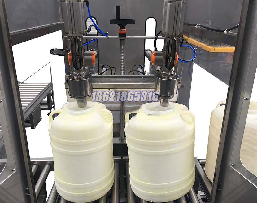 應用案例YCS-100型高灌稱重式灌裝機,原理是由稱重傳感器平臺在PLC的控制下設定計量.是高精度,高技術產品,是集機、電、儀一體化的新型機種,它改變了傳統流量計式灌裝機定量精度及無法對較粘液體的計量缺陷。是文明生產和國家明令規定淘汰杠桿秤后,融稱重與灌裝一體化的理想設備,灌裝時先去除皮重, 稱重灌裝機適用于各種有粘、無粘、有一定腐蝕性和無腐蝕性、有泡沫、無泡沫的液體稱重定量灌裝。高灌全自動灌裝壓蓋線工作流程:人工放桶-自動滾筒輸送-自動定位-自動稱重灌裝-自動滾筒輸送。功能特點1.控制系統:工業電腦(PLC)/電子-氣動控制2.操控面板:“智能型”彩色觸摸屏人機操作界面3.灌裝精度:±0.2%(千分之二)4.灌裝方式:液面上灌裝(頂部灌裝)。5.容量調整:電腦控制自動稱重計量傳感調整。6.容器輸送:不銹鋼304機架、不銹鋼異型板鏈式可變速自動輸送帶,配有光電傳感及工業電腦自動程序控制閘門。7.全自動控制“防噴濺、防滴漏”系統。8.全自動控制“無桶或缺桶不灌裝”系統。9.全自動控制“電腦控制、電子稱重計量傳感調整”系統。10.全自動控制“對位、灌裝、輸送”系統。11.全自動控制“報警和安全防范”系統。12.優質不銹鋼304框架、有機玻璃“安全操作防護罩”。13.具備數字式顯示灌裝量的功能,可完成多種灌裝量的設置。14.具備自動去皮,按凈重灌裝的功能。15..具備真空回抽防滴漏的功能,高黏度物料需要更換成回收槽。16.具備控制系統手動和自動(微動開關控制)功能。17.具備快慢雙速控制功能,防止飛濺。18.具備防止誤操作和斷電保護等緊急處理功能。19.液體流經管道為不銹鋼304材質。20.密封件采用硅橡膠(耐磨損、耐高溫、耐酸堿、耐腐蝕),氟橡膠(耐磨損、耐強酸堿、強腐蝕)。【根據實際物料屬性溫度匹配合適的密封件】型號YCS/100KG-2灌裝頭數量雙頭量程范圍20-100KG灌裝精度±0.2%進料壓力0.3-0.5MPa氣源壓力0.4-0.6MPa耗氣量0.3m3/分鐘電源220V/380V, 50HZ灌裝速度(桶/小時)(水作為測試介質)60-100桶/小時尺寸(L×W×H mm)1500×870×1650(主機)輸送機根據實際空間需求定制直線或轉彎重量(大約)800KG上海廣志自動化設備是專業生產25升灌裝機的廠家,歡迎廣大客戶前來咨詢,電話021-60518382 上海廣志自動化設備是專業生產25升灌裝機的廠家,歡迎廣大客戶前來咨詢,電話021-60518382 上海廣志自動化設備是專業生產25升灌裝機的廠家,歡迎廣大客戶前來咨詢,電話021-60518382