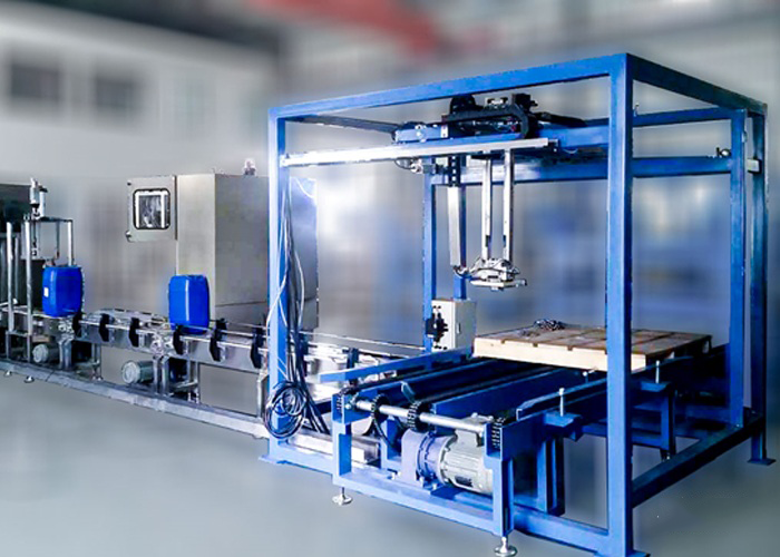 Thejerrycan/pail palletization can be realized by means of coordinate mechanical positioning. It is suitable for the auto filling of 10-40L plastic and steel jerrycan/pail. According to the container
