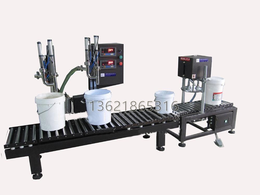 稱重灌裝機+塑料桶蓋壓蓋機